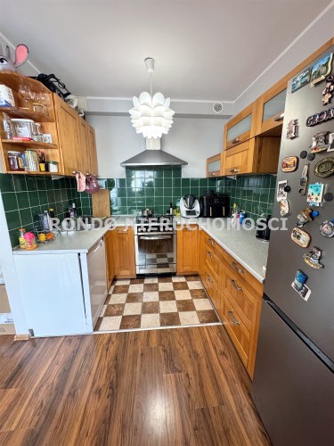 - Kuchnia (10 m2): Aneks kuchenny z pełną zabudową i kącikiem jadalnianym. Wyposażenie obejmuje pełny sprzęt AGD, w tym dużą, nową lodówkę oraz zmywarkę.